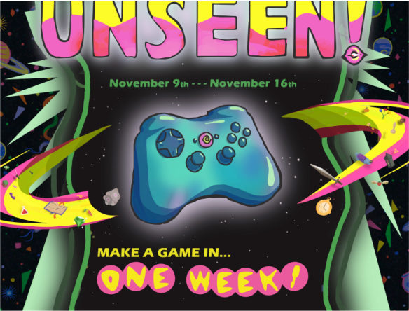 2 posters to promote a school-led game jam in collaboration with Katie A. Green for Cal State Monterey Bay.